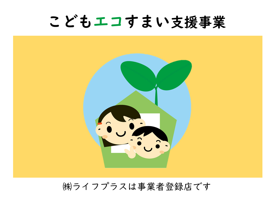 - ㈱ライフプラスはこどもエコすまい支援事業の事業登録店です。予算額が決まっている先着順の補助金なので早期終了が予想されます。