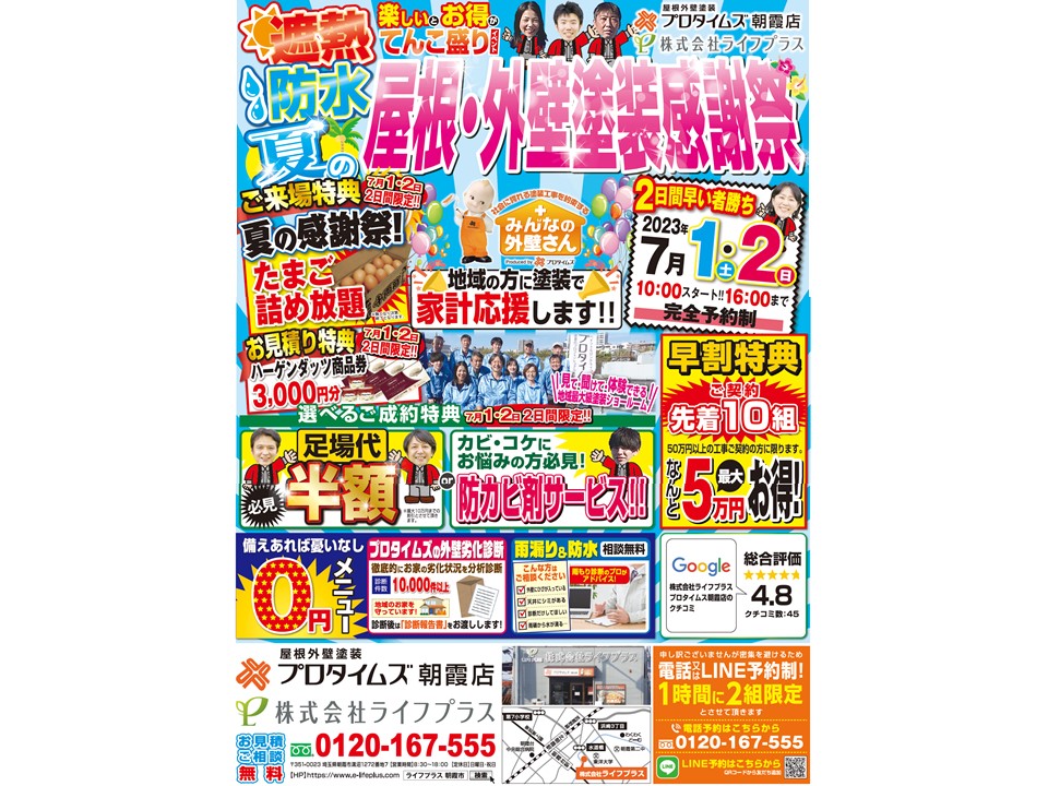 7月1日.2日限定 夏の屋根・外壁塗装 感謝祭 予約受付中!!(終了しました)
