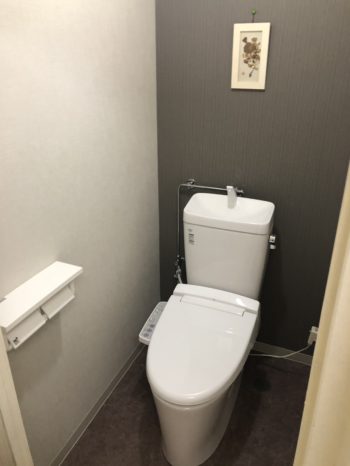 お掃除のしやすいフチレストイレにリフォーム 壁紙・クッションフロアの貼り替え トイレリフォーム事例