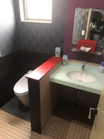 トイレは小さい空間ですが、解体、造作、配管、タイルなどやることがたくさんあり、3日目の営業に間に合うか心配でしたが何とかトイレが使用できるようになりました。