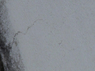 ひび割れが発生しています。塗膜の防 水機能が低下し、内部への水分の浸入が懸念されます。