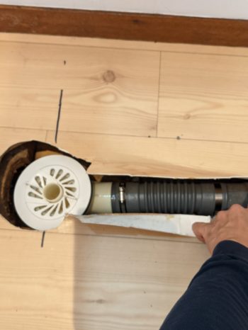 既存の排水トラップを撤去します